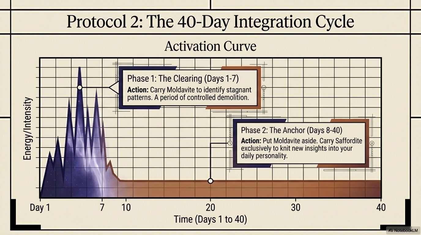 - Action: Put the Moldavite aside and carry Saffordite exclusively for the remainder of the 40 days.