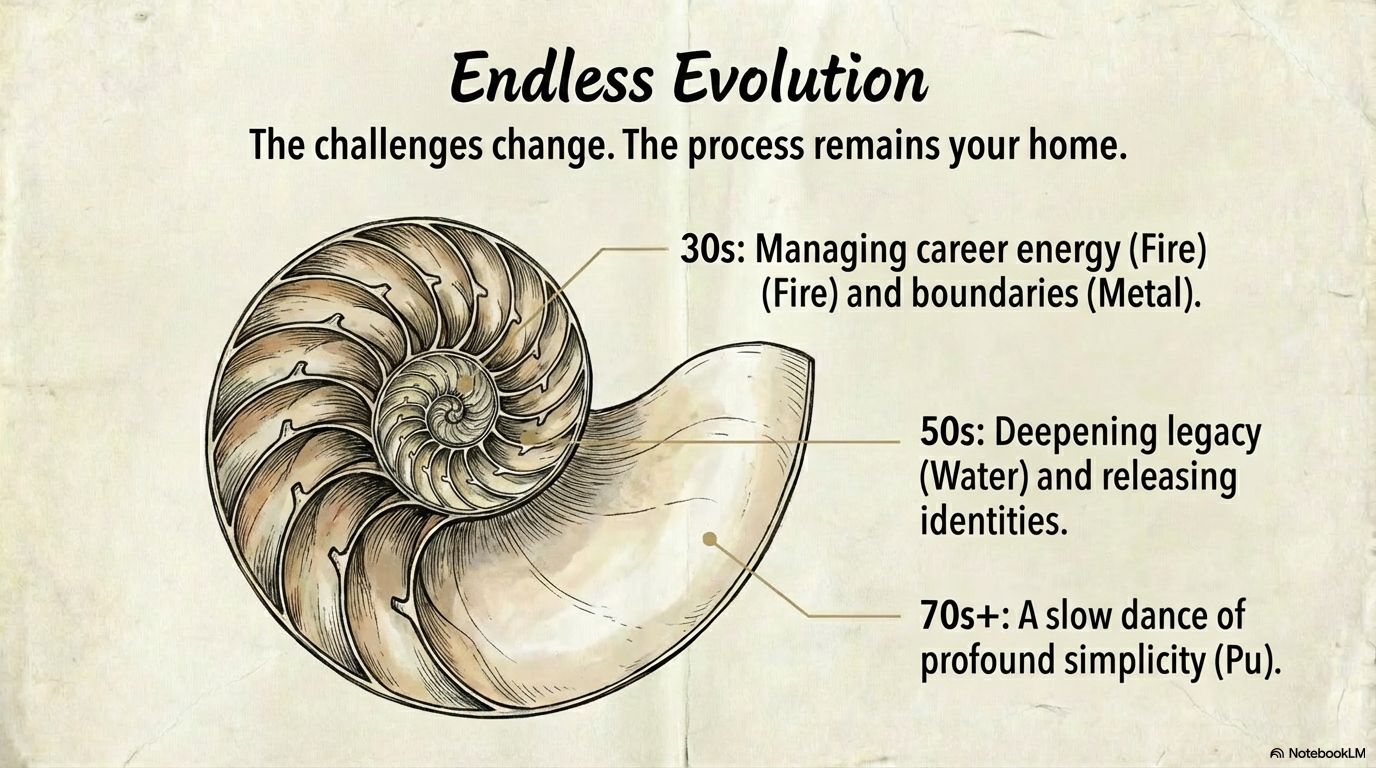 - In Your 70s and beyond: The spiral becomes a beautiful, slow dance of profound simplicity (Pu), where being and doing are one, and every moment is an expression of the entire journey.