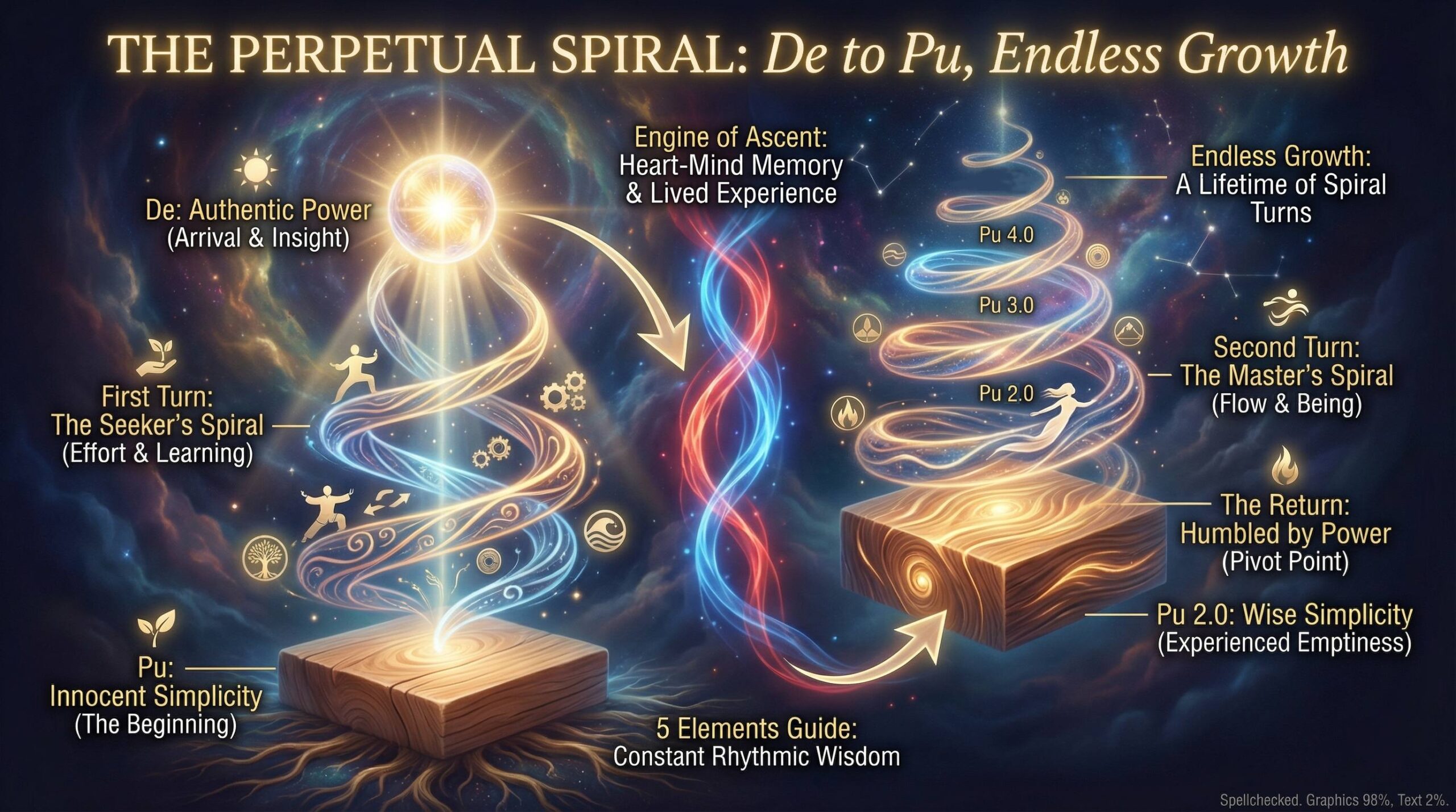Tags: #TaoistSpiral #CycleOfGrowth #Pu #De #Taoism #LifelongLearning #PerpetualGrowth #SpiritualSpiral #Integration #WuWei #2026Mindset #TheUncarvedBlock