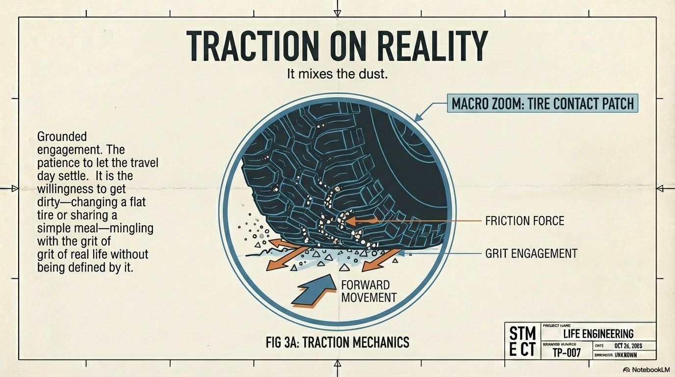 It’s the prosperity of having enough space—in your schedule and your mind—to truly receive a place. It’s the resilience that comes from mixing with the dust, from being humble and engaged enough to change a flat tire, ask for directions, and share a meal with strangers.
