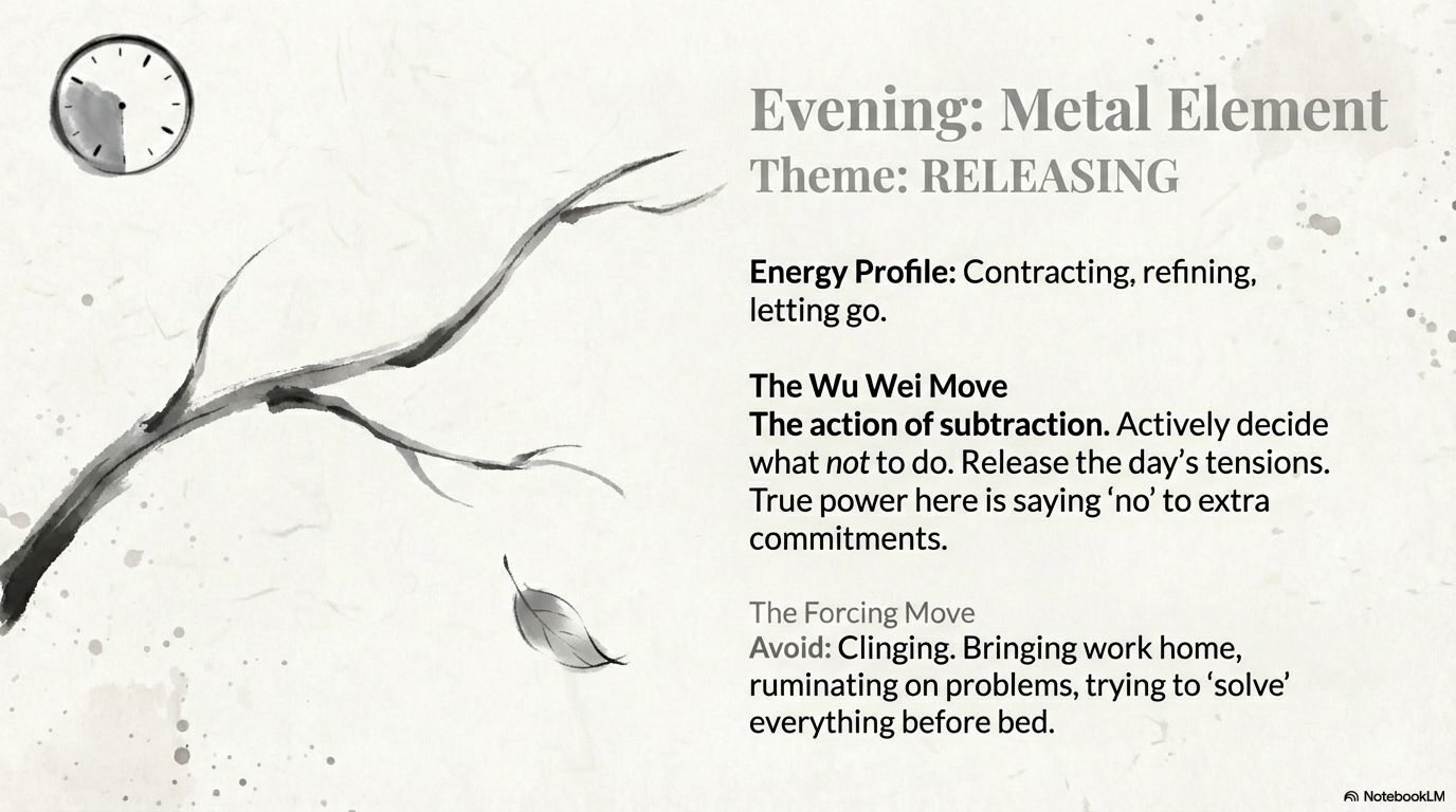 4. Evening (Metal Element) – Wu Wei as RELEASING, Not Clinging