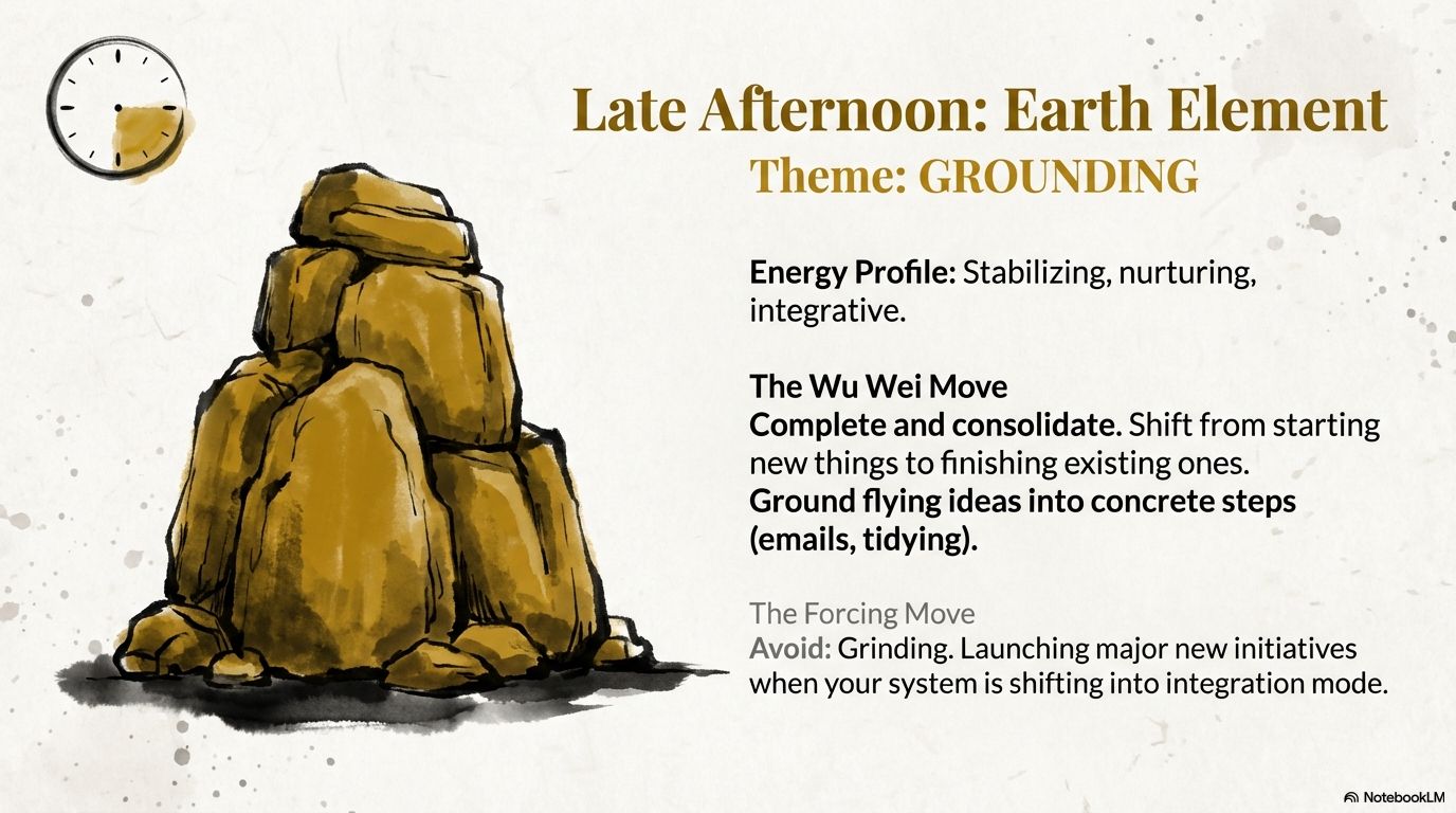 3. Late Afternoon (Earth Element) – Wu Wei as GROUNDING, Not Grinding