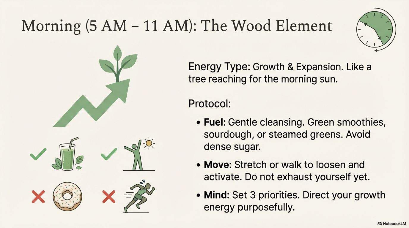 1. Morning (5-11 AM) – WOOD Element: Fuel Gentle Growth