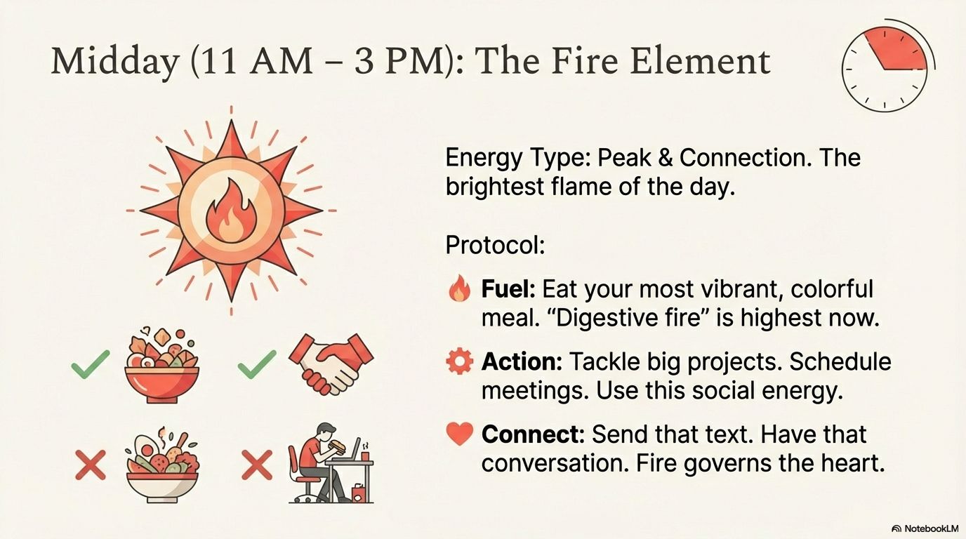2. Midday (11 AM – 3 PM) – FIRE Element: Stoke Your Sustainable Peak