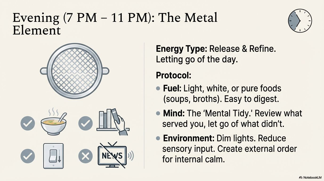4. Evening (7-11 PM) – METAL Element: Let Go and Purify
